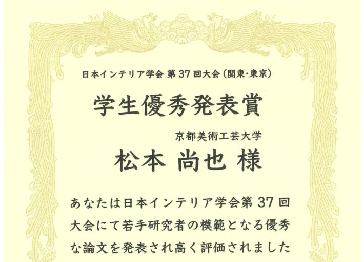 「日本インテリア学会 第37回大会」で大学院 建築学研究科 修士1年生が受賞しました