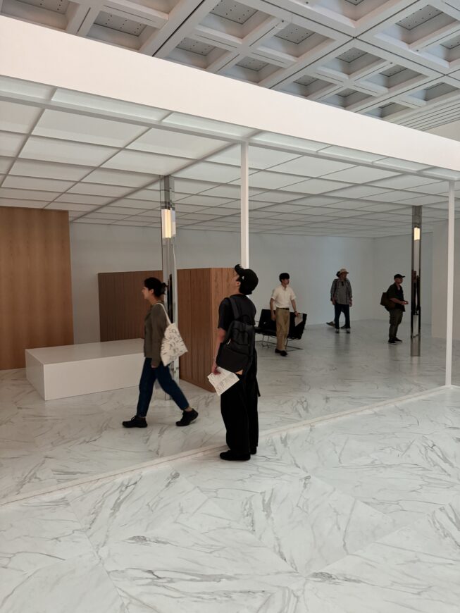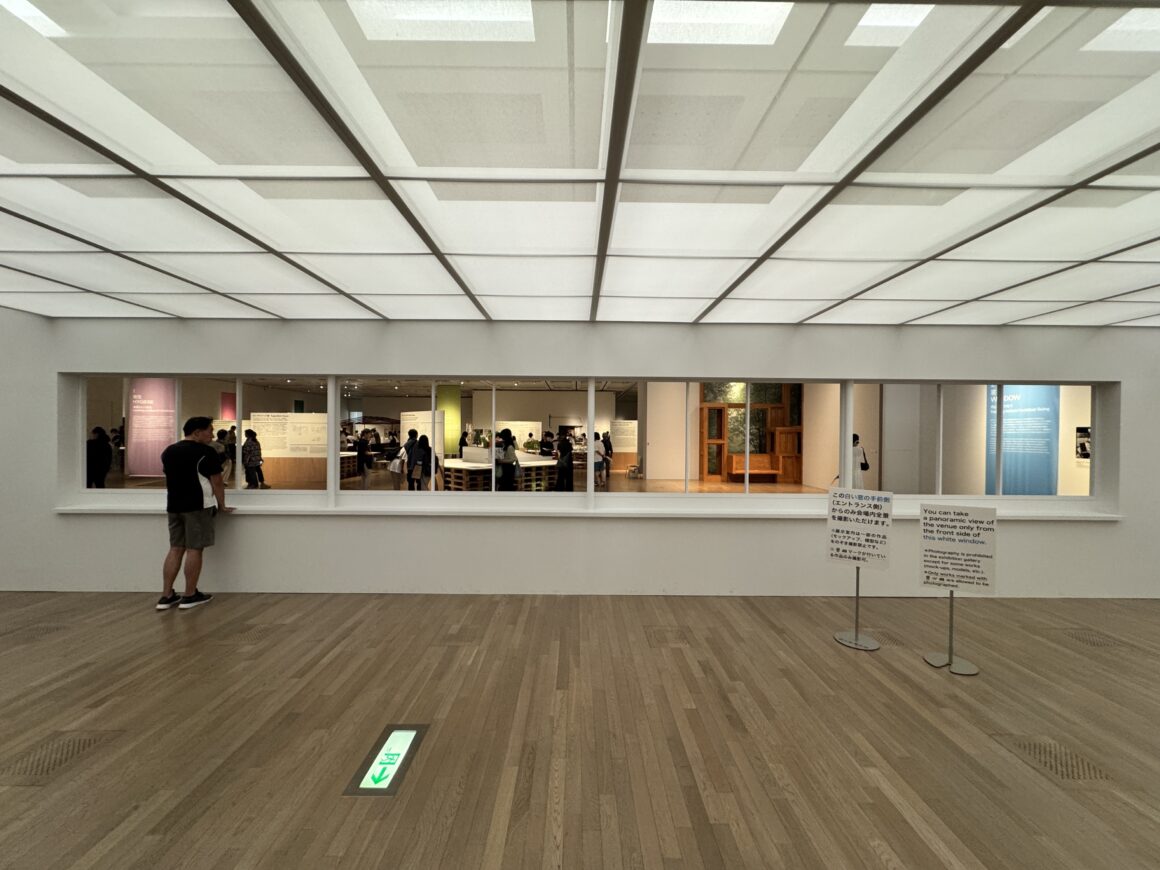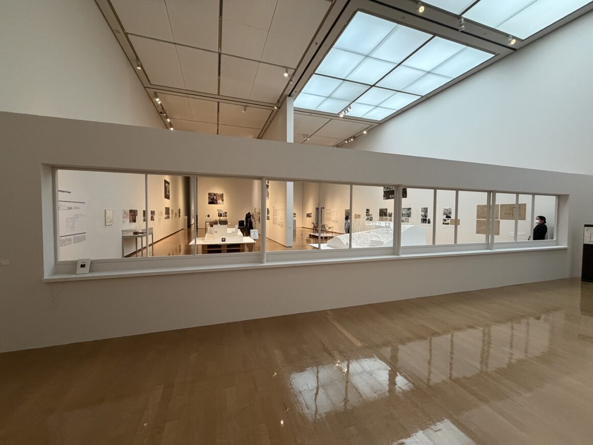 東京会場は兵庫会場に設置されなかったミース・ファン・デル・ローエの原寸大「ロー・ハウス」が展示されており、体験することが出来ました。東京と兵庫の会場は展示方法に違いがあり、美術館の特徴を感じることが出来ました。特に兵庫県立美術館は安藤忠雄を色濃く感じることの出来る展覧会でした。実は、グラングリーン大阪のVS.で開催された「安藤忠雄」展の見学にも参加していたため、学生達の素直な感想が聞けました。