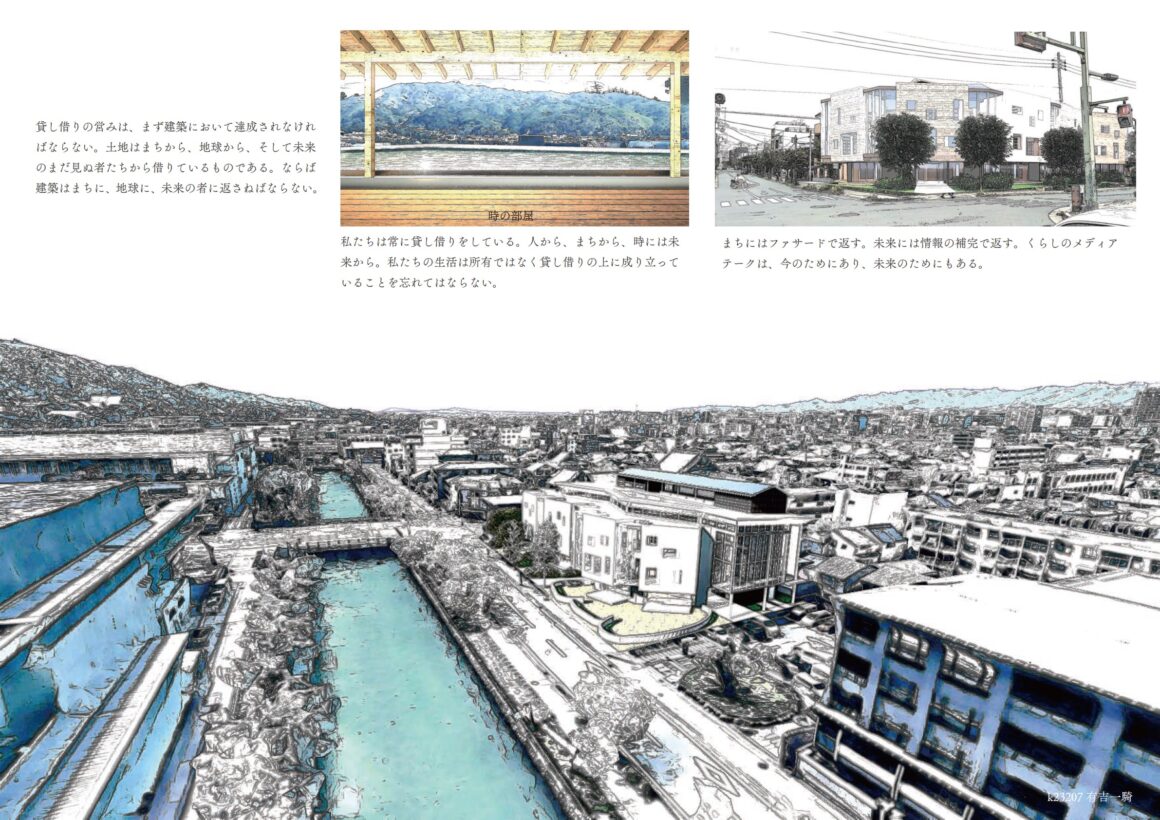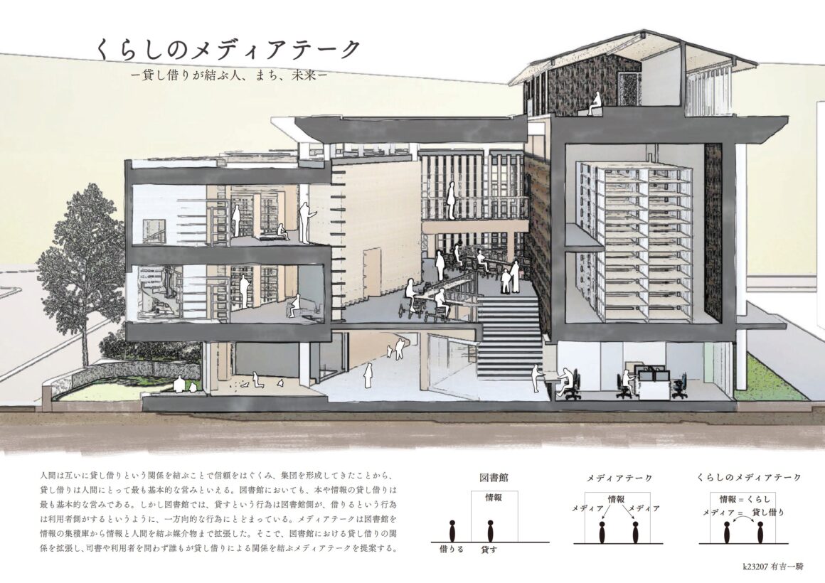 建築学科3年生後期の演習「建築デザイン演習IIB」の第一課題「京のメディアテーク:包摂の場としての図書館を設計する」を紹介します。
