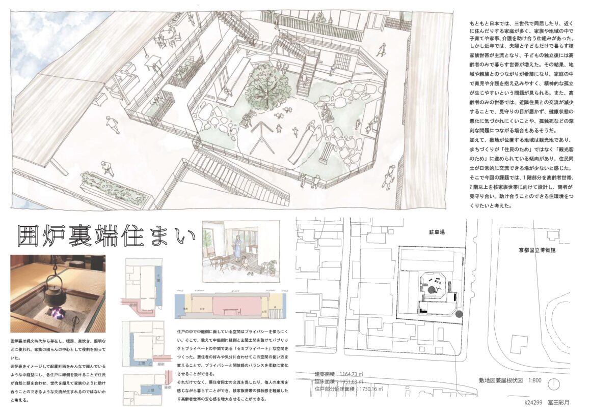 世代を超えた助け合いが生まれる、温もりのある住まい方を示した作品です。