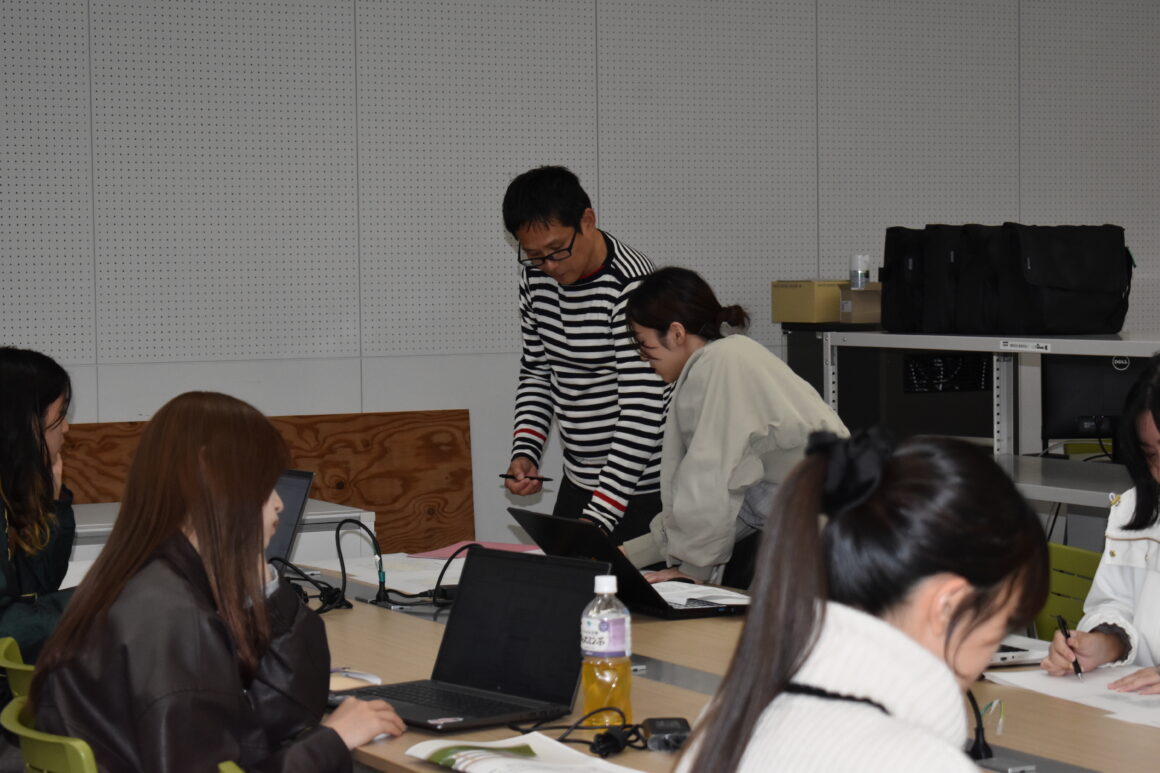 授業では、複数の教員がローテーションで指導。 多角的な視点からアドバイスを受けながら、学生たちは試行錯誤を重ねました。
