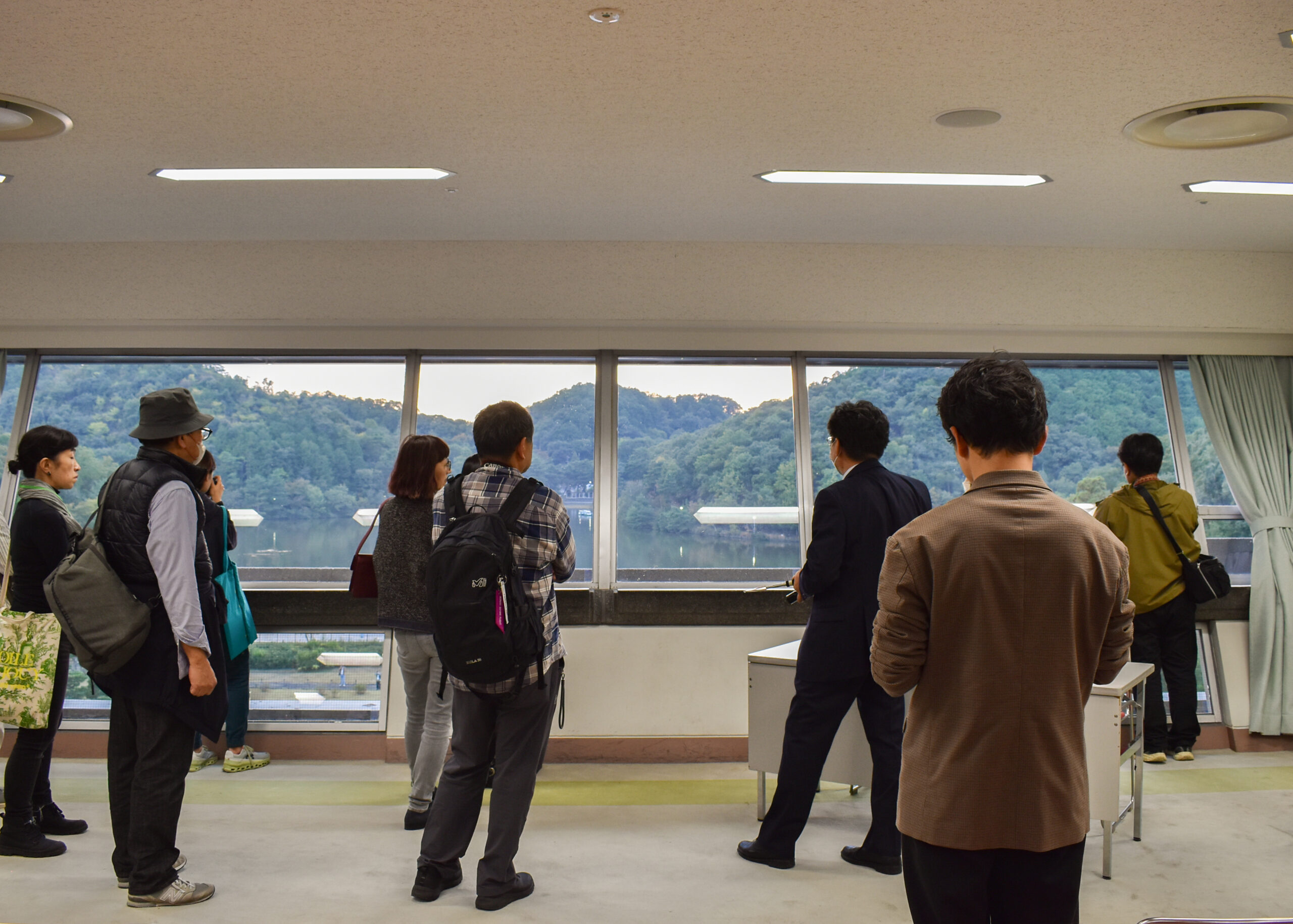 エントランスから2階 Room A、1階Room C-2、メインラウンジにメインホール、さらに5階 テラスから屋上、宝ヶ池に面した会議室…と、会議の機会でもなければ入ることのできない数多くの空間を見学。