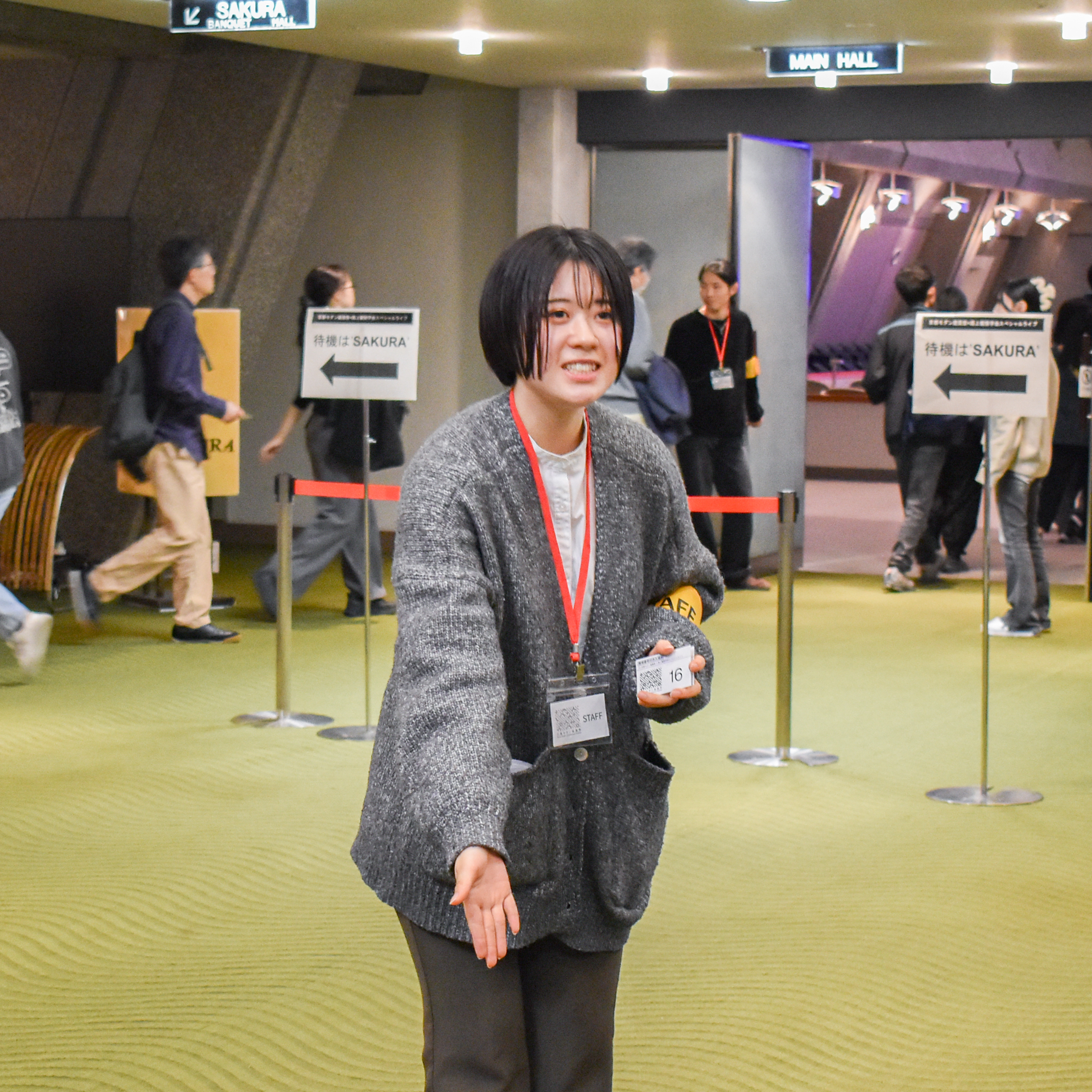 学生たちは開場とともに続々と押し寄せる来場者の方たちに整理券を配布し、入場列へ誘導する業務に嬉々として取り組み、迷われている方も丁寧にご案内していました。