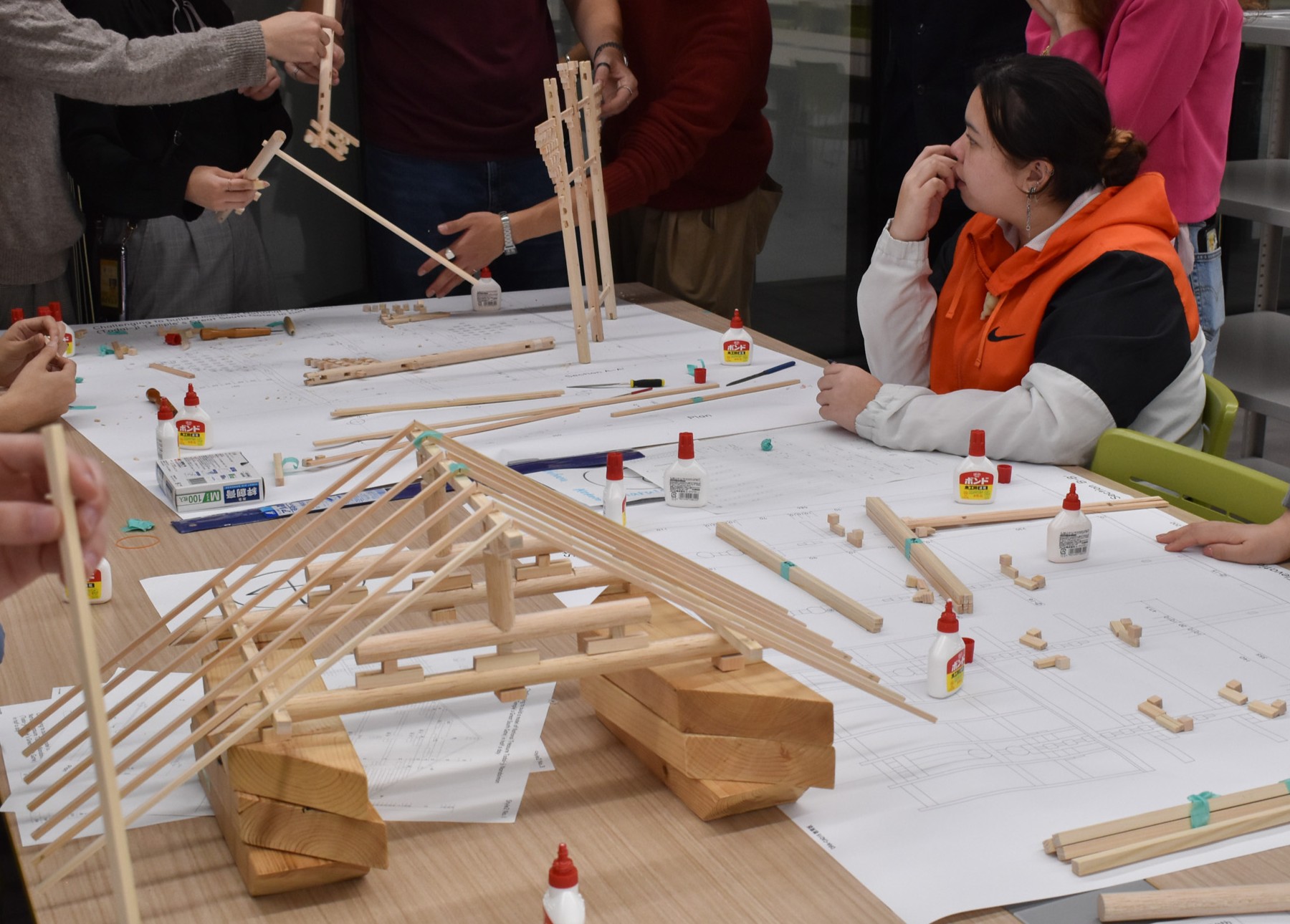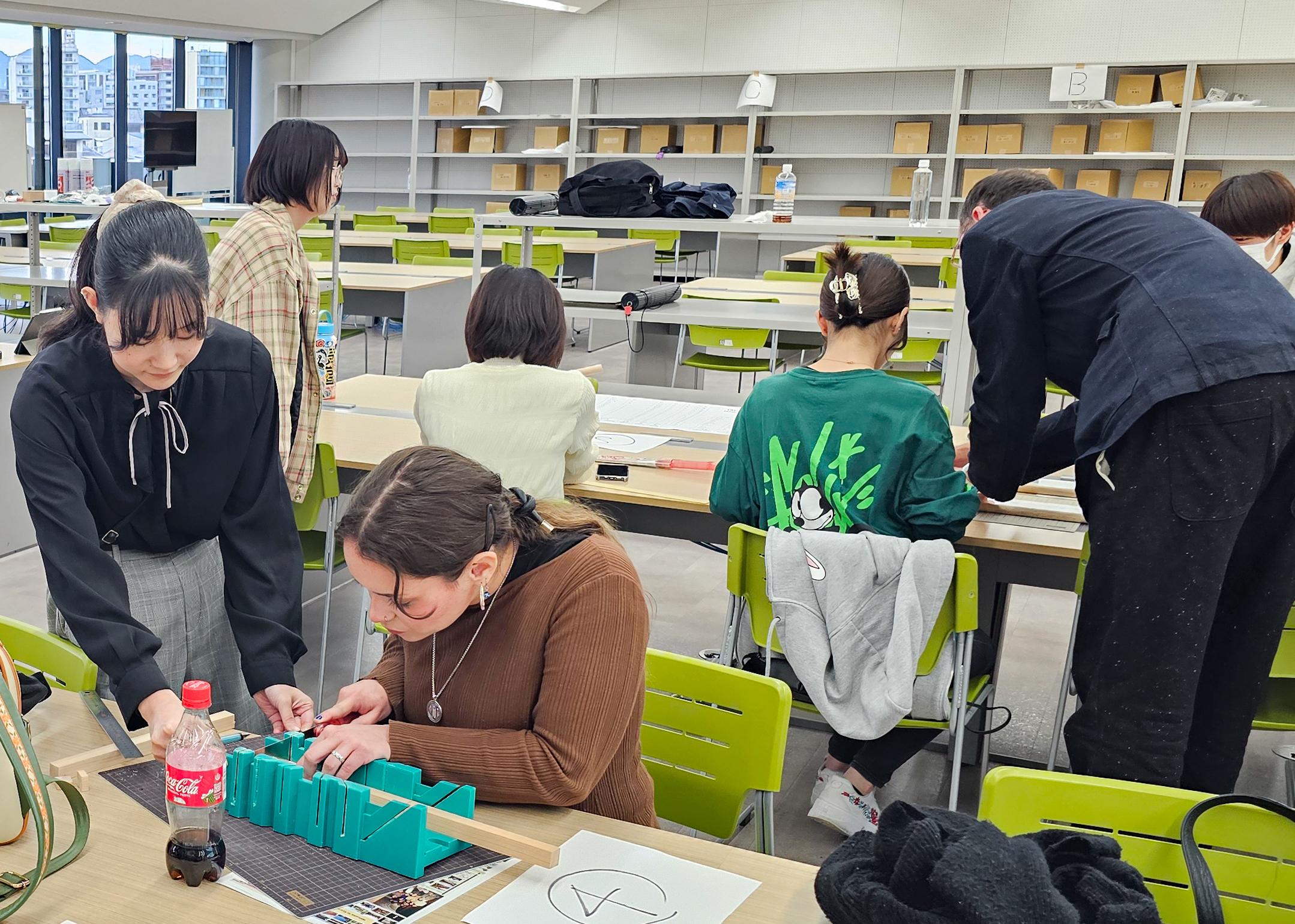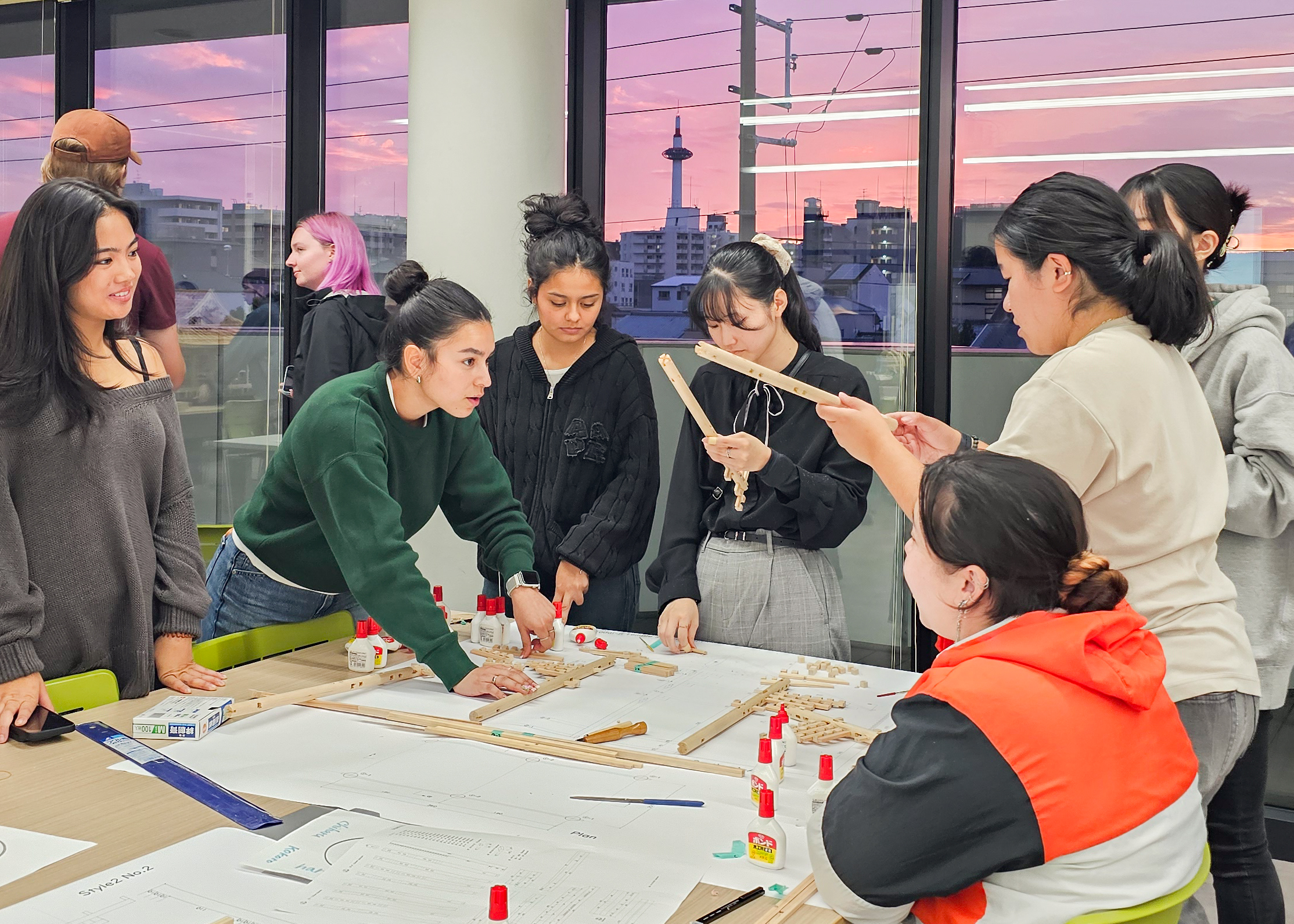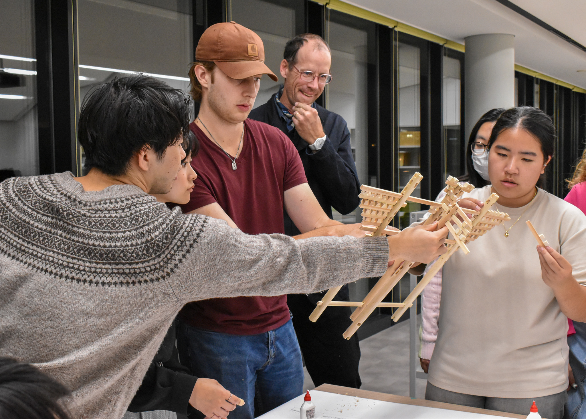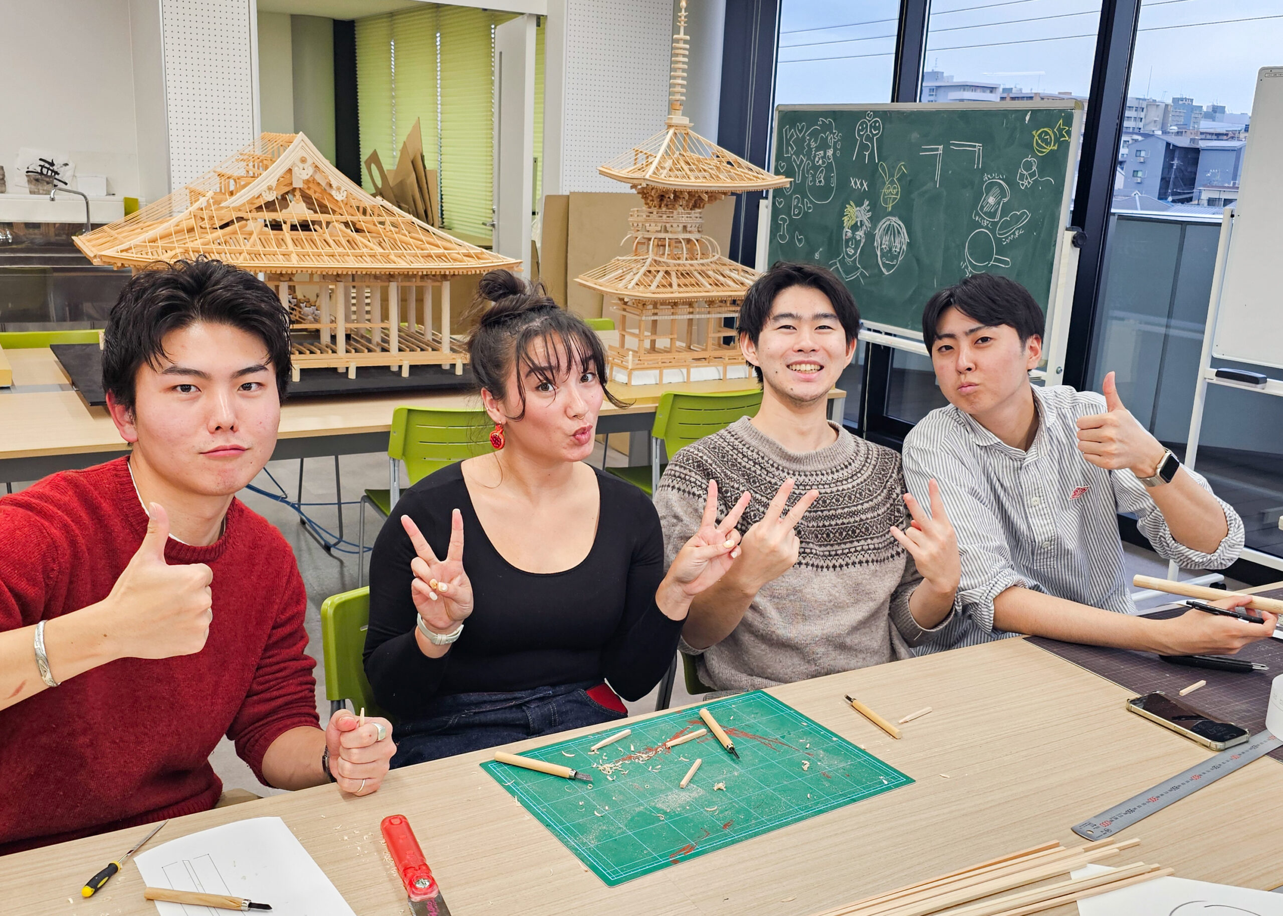 建築学部の研究室を見学した後、ワークショップ「半日で国宝東大寺南大門模型制作に挑戦!」を実施。