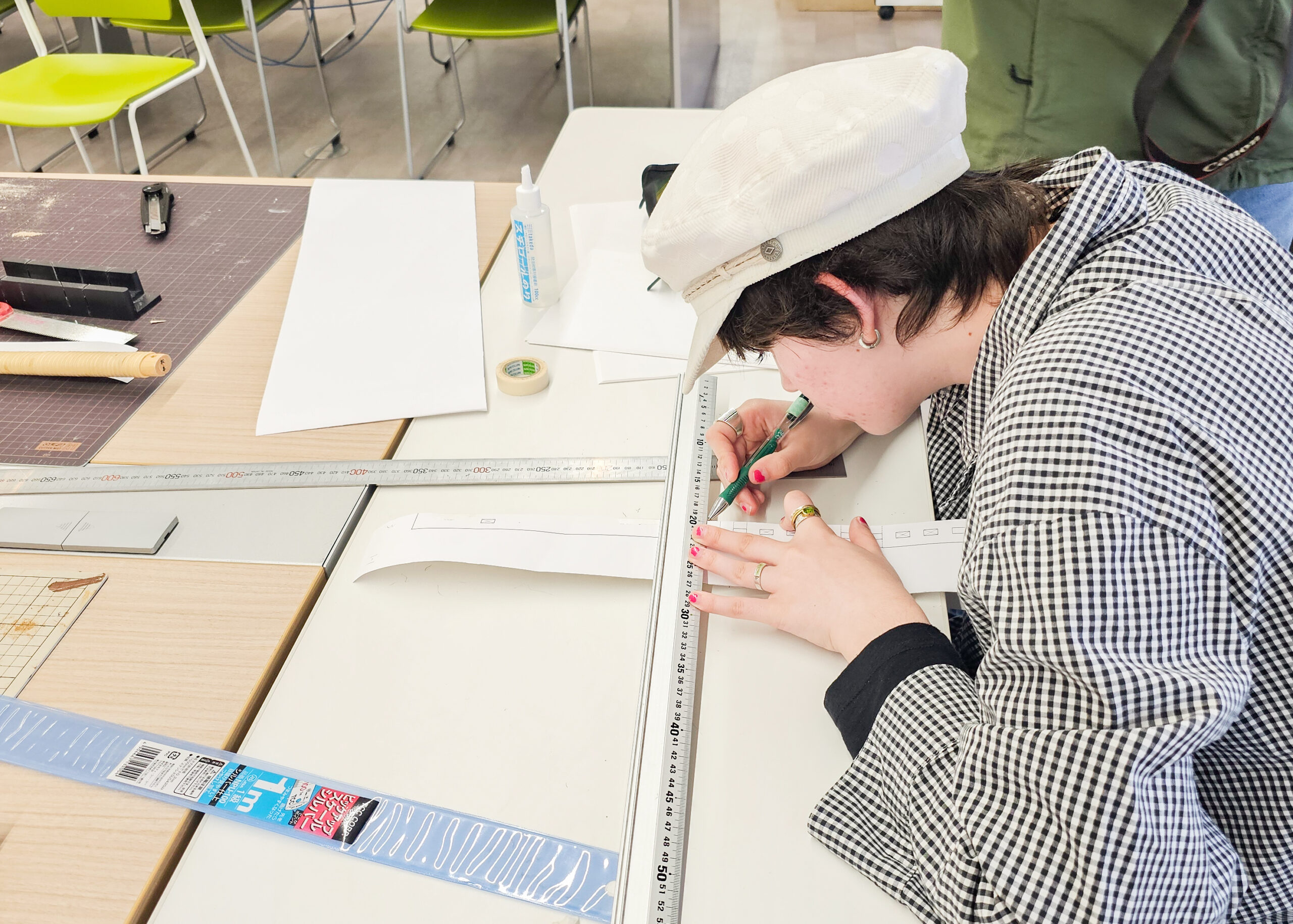 図面の確認から部材の加工、組み立てまで、200以上の部材を必要とするスケールの大きな建造物の模型制作に、半日というごく短い時間で取り組むなかなかハードなプログラム。
