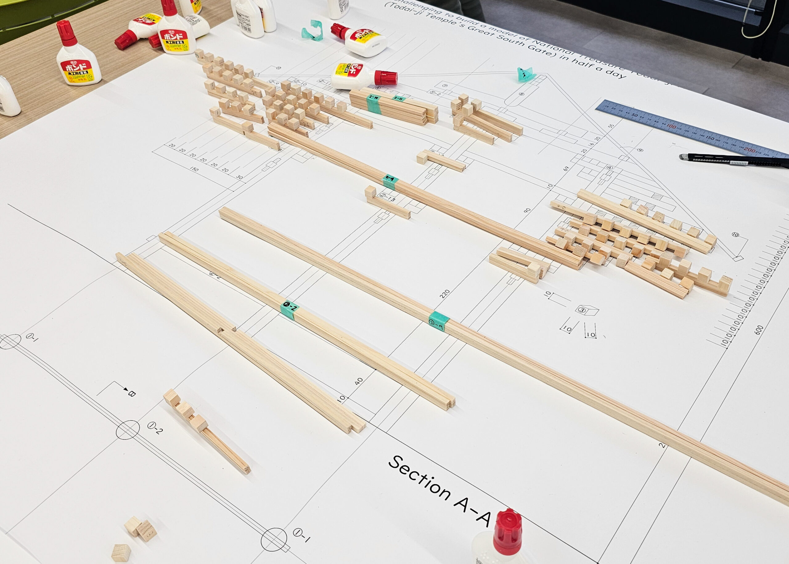 KYOBI建築学部の学生有志とともに、東大寺南大門〈国宝〉の模型制作にチャレンジしました。