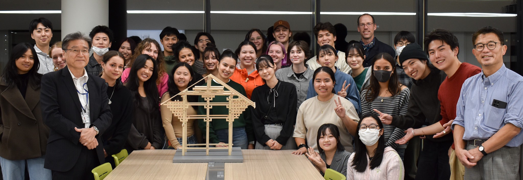 11月5日(水)、カリフォルニア・ポリテクニック州立大学(Cal Poly)建築環境デザイン学部3年生 約20名が来学され、建築学部 井上年和教授の指導により日本の伝統建築について学ばれました。