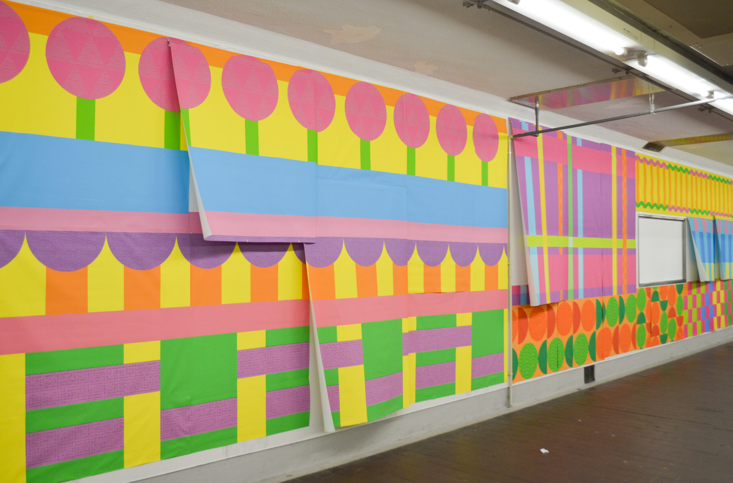四条通地下道の活性化を目的とする四条地下道アート展「Art Under the Shijo」。プレゼン審査を経て選ばれた京都市内の学生グループ6組が、四条地下道12番出口~13番出口の間(約72m)の壁や柱にアート作品を制作・展示するイベントで、第3回を迎える今年は11月5日(水)~12月21日(日)に展示が公開されています。