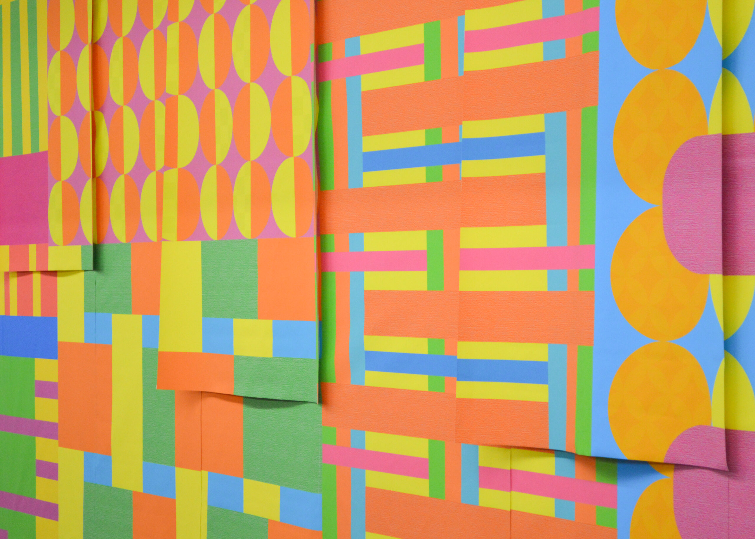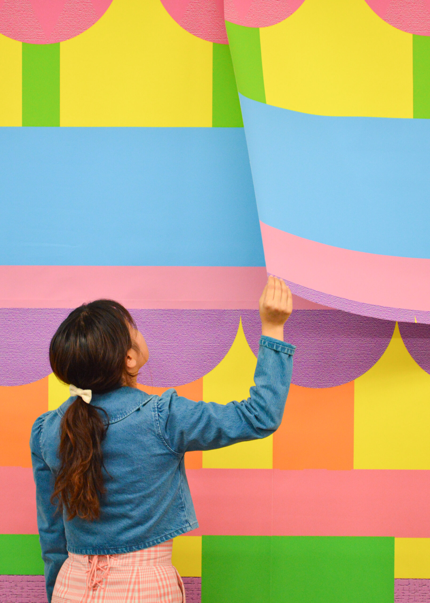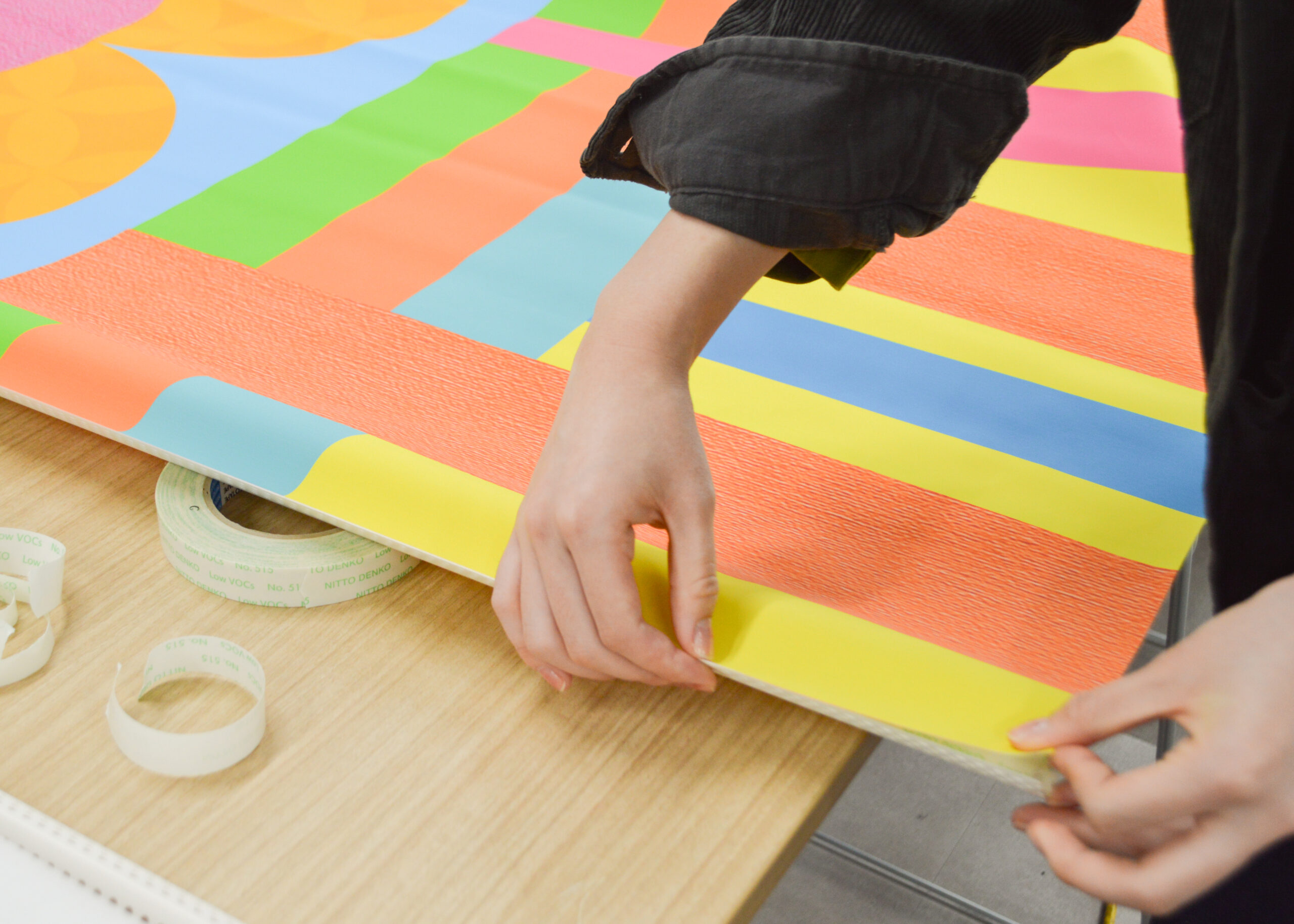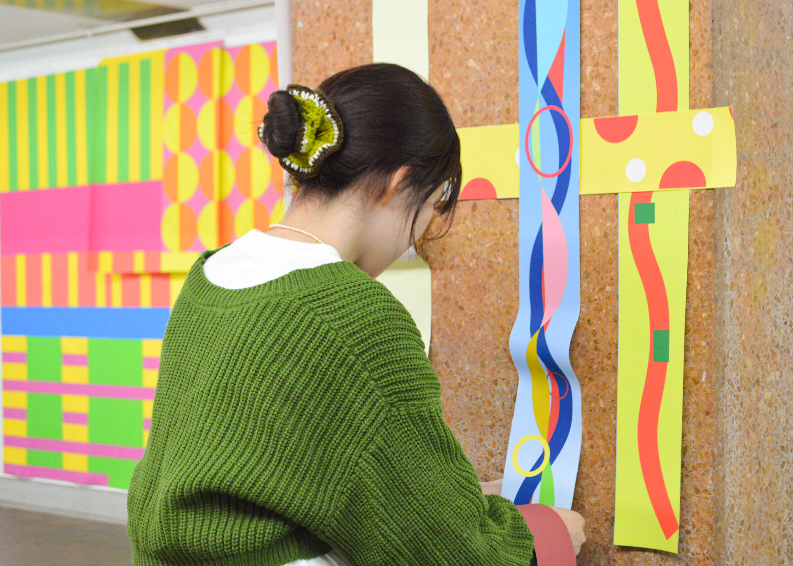 「編む」「織る」という京都の伝統文化から着想を得て、ポップで鮮やかな色彩を用い、新しい「編むかたち」をデザインした作品です。