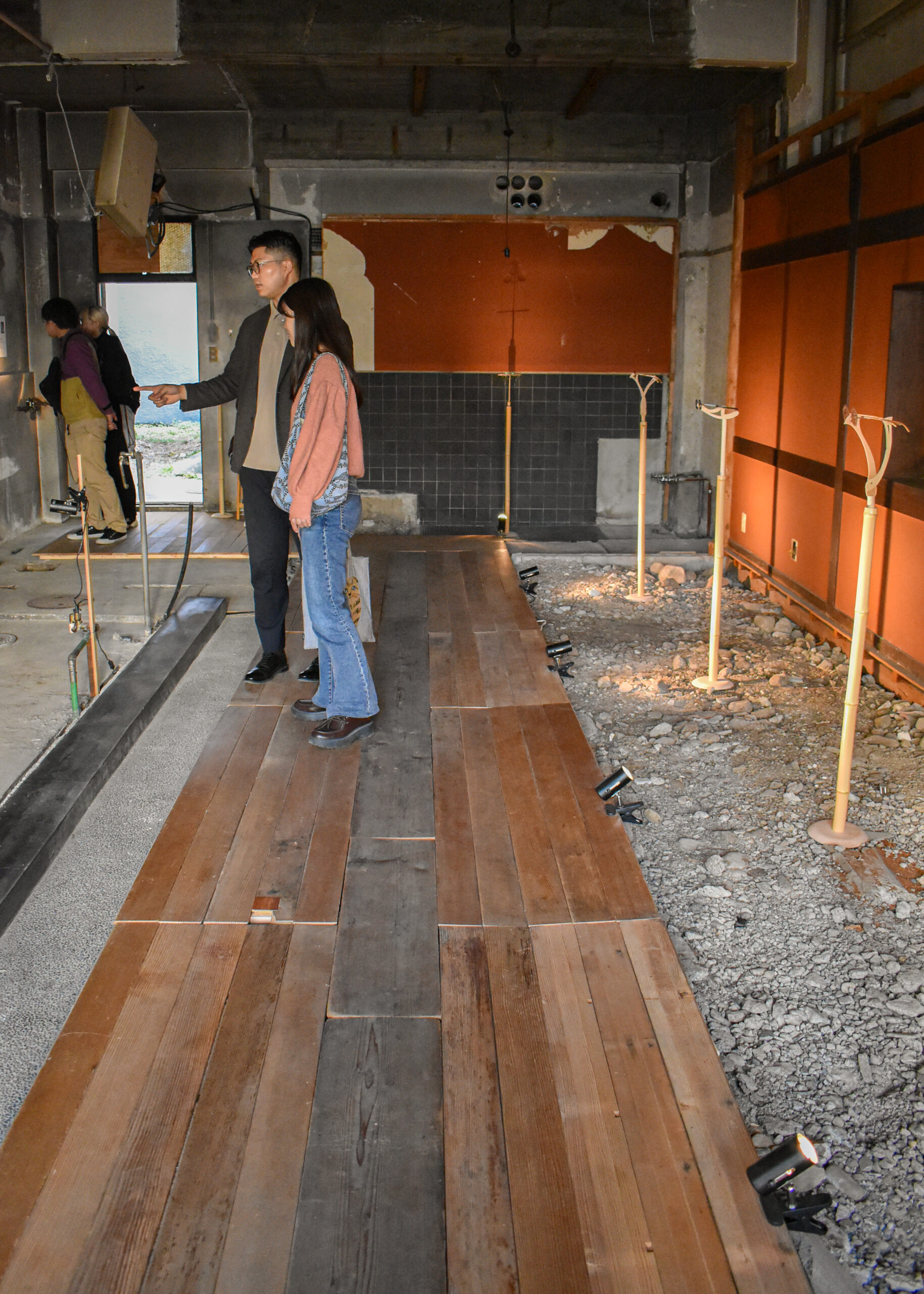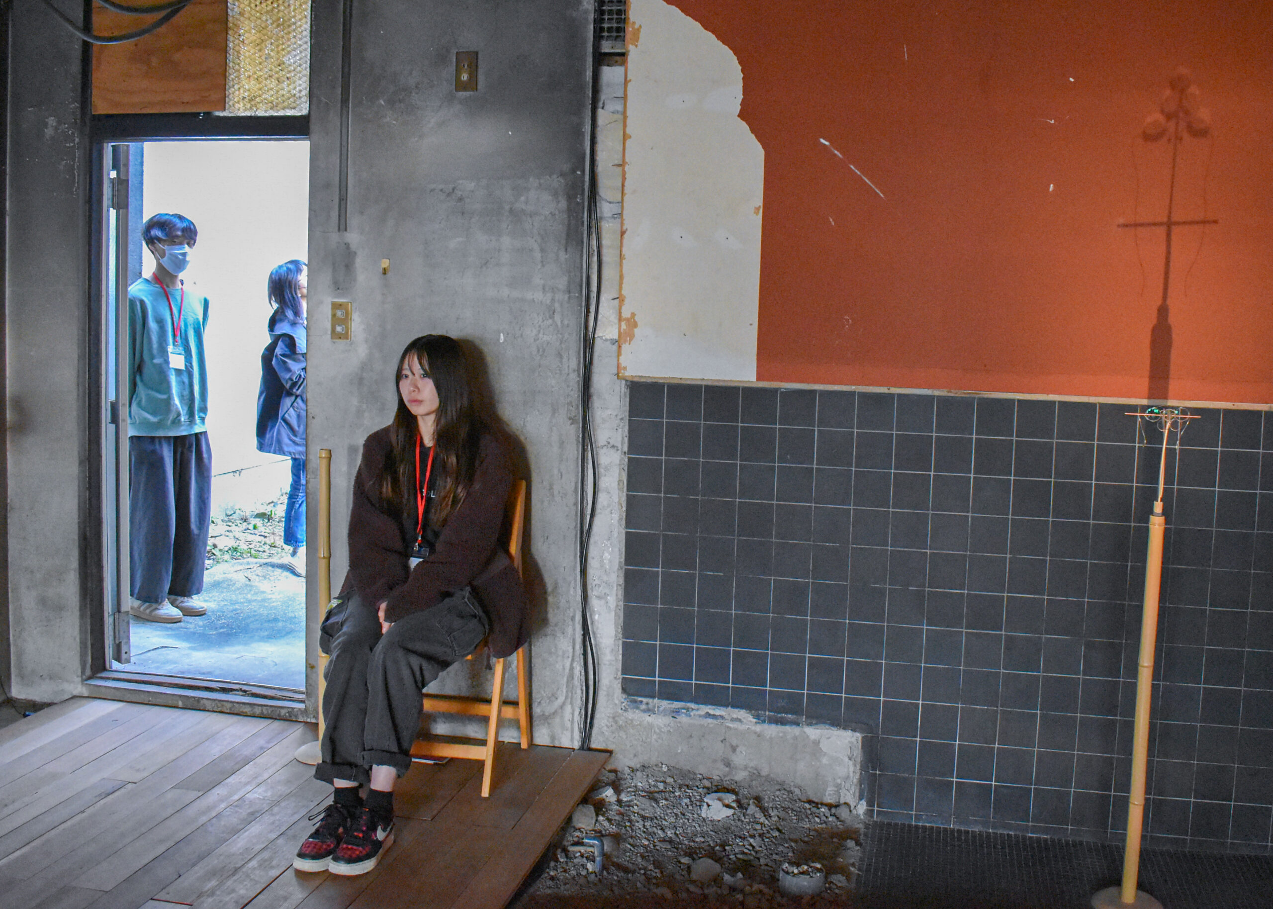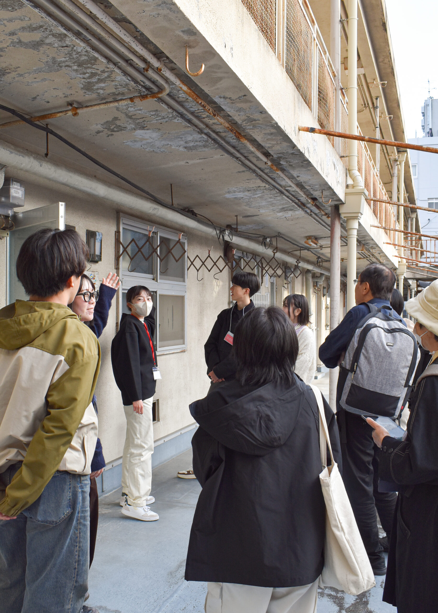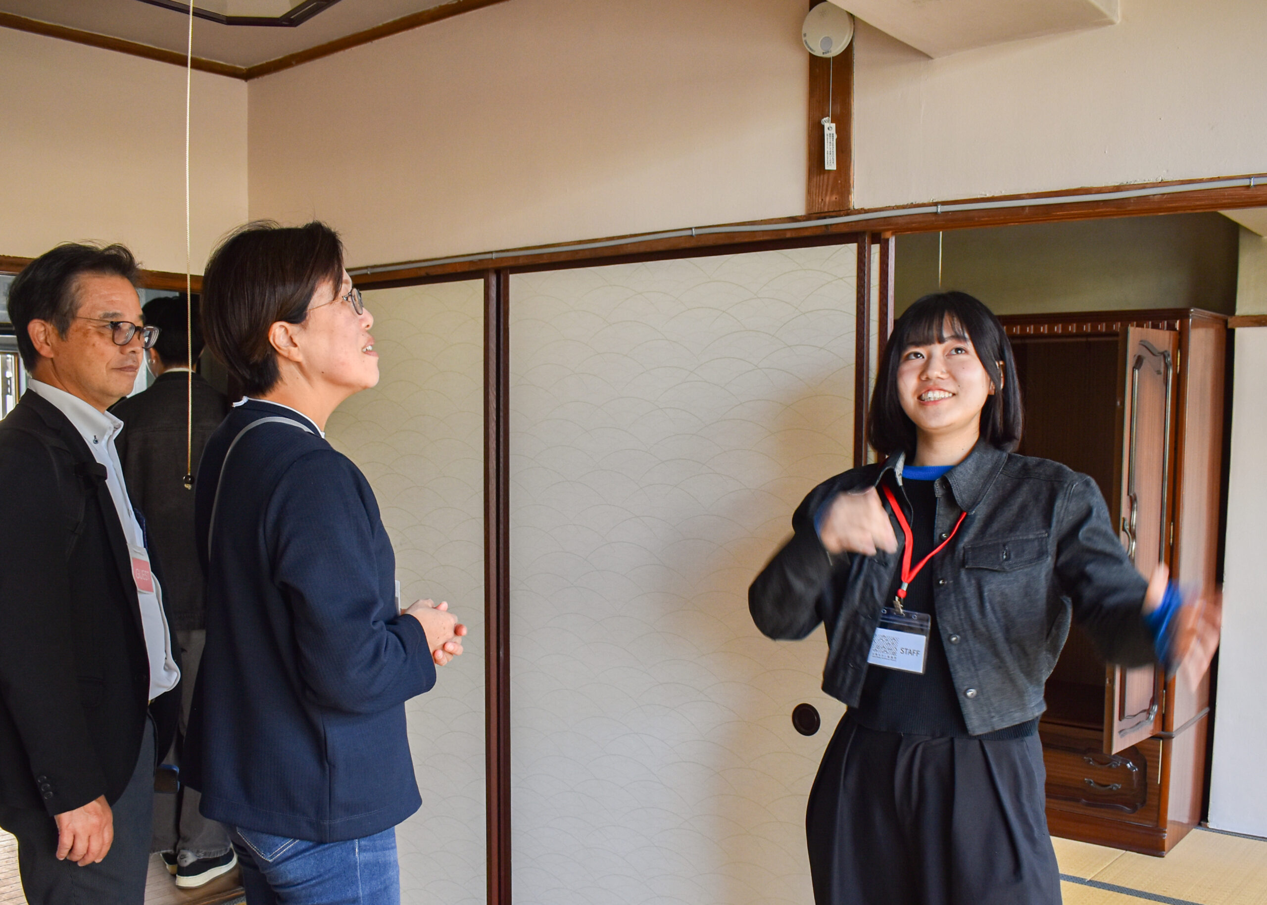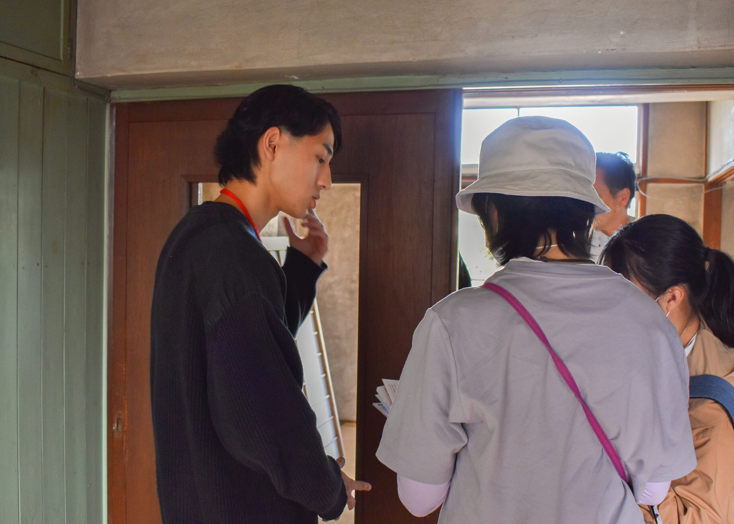 学生たちは当日の受付・誘導や住戸ミニツアーガイドをしながら、堀川団地の魅力とともに自分たちのつくり上げた空間に対する来場者の方たちの反応を目の当たりにすることに-
