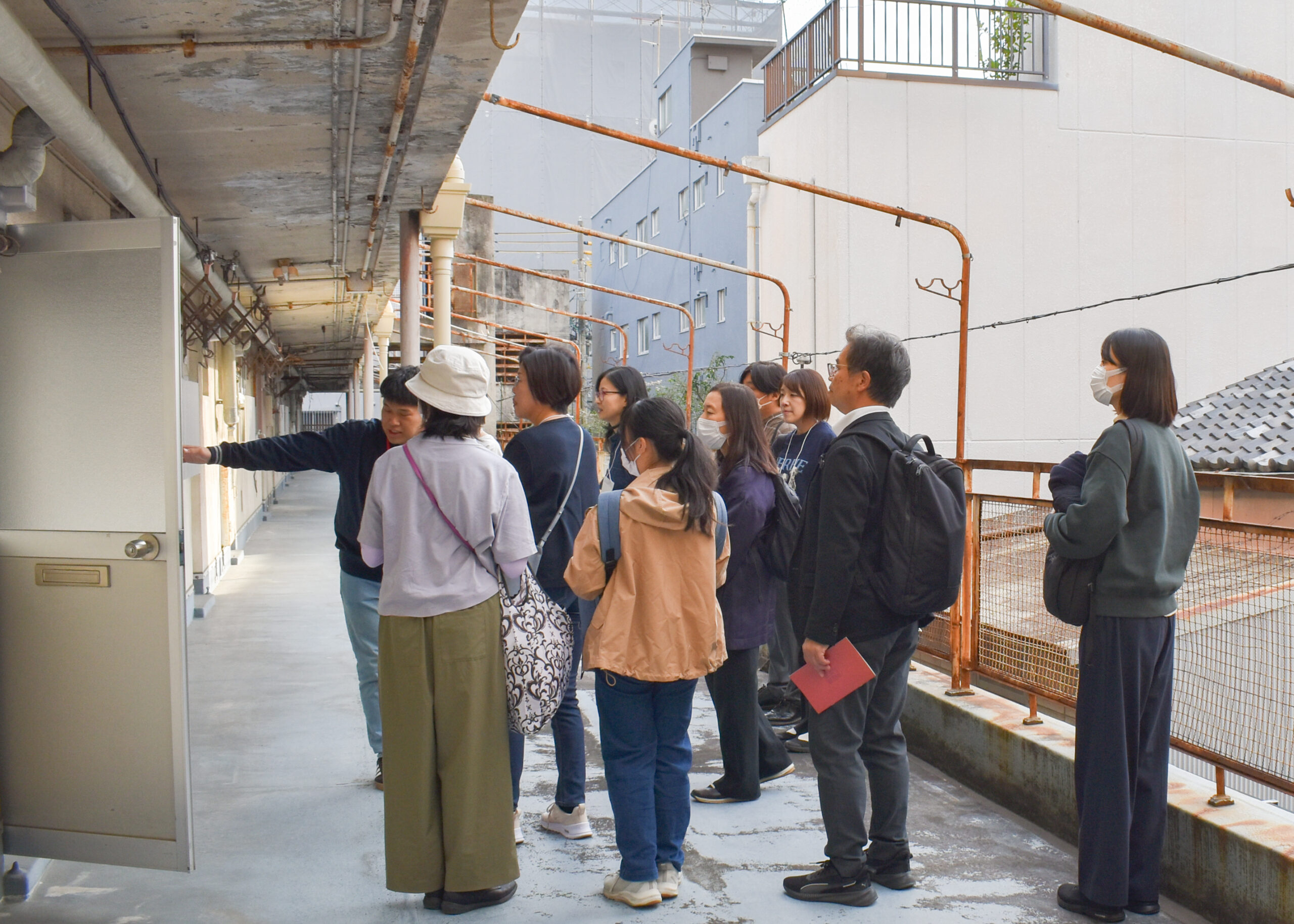 11月8日(土)・9日(日)、京都に現存する魅力的なモダン建築が一斉公開されるイベント「京都モダン建築祭」の後期パスポート公開プログラムの一つとして堀川団地の一部公開が行われ、学生有志が案内や誘導等を務めました。
