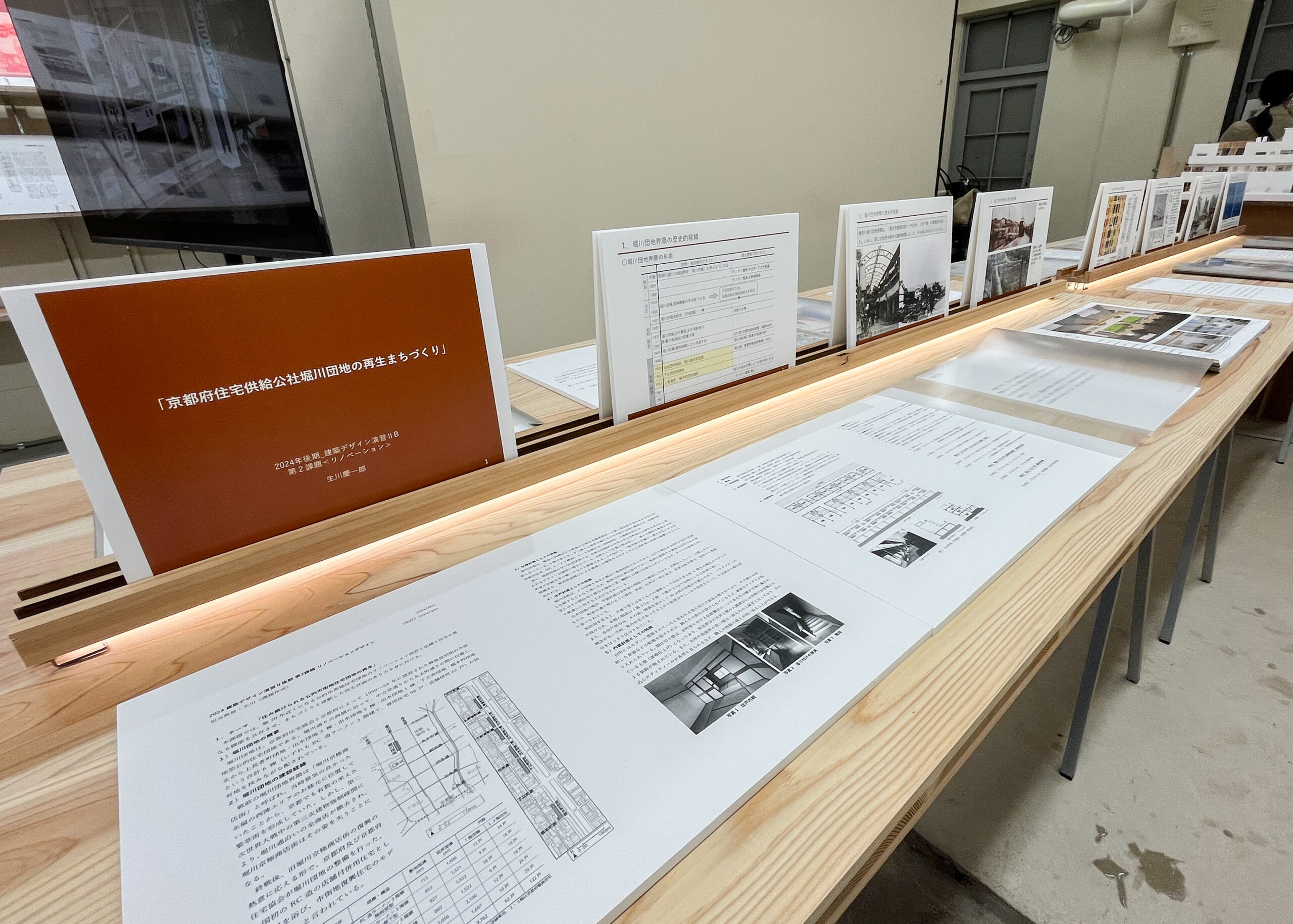 KYOBIでは、副学長 髙田光雄教授をはじめ堀川団地の保存・活用の研究に取り組む教員の指導のもと、建築学部の学生たちも演習課題として堀川団地リノベーションに取り組んでいます。