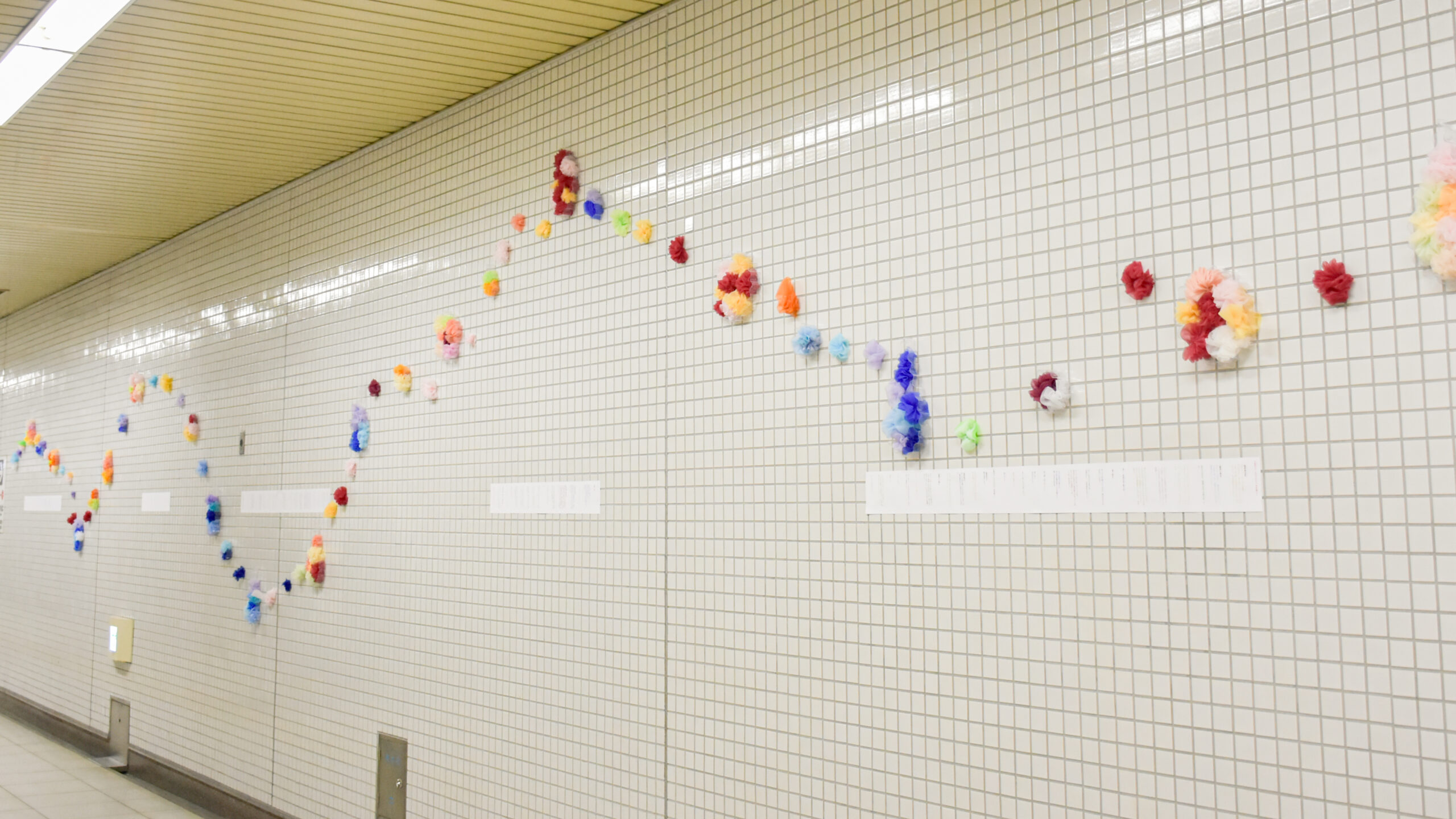 14回目となる今年は過去最多の13大学が参加。共通テーマ「交わる、彩る、息づく」を表す作品をそれぞれに制作し、各担当駅に展示しました。