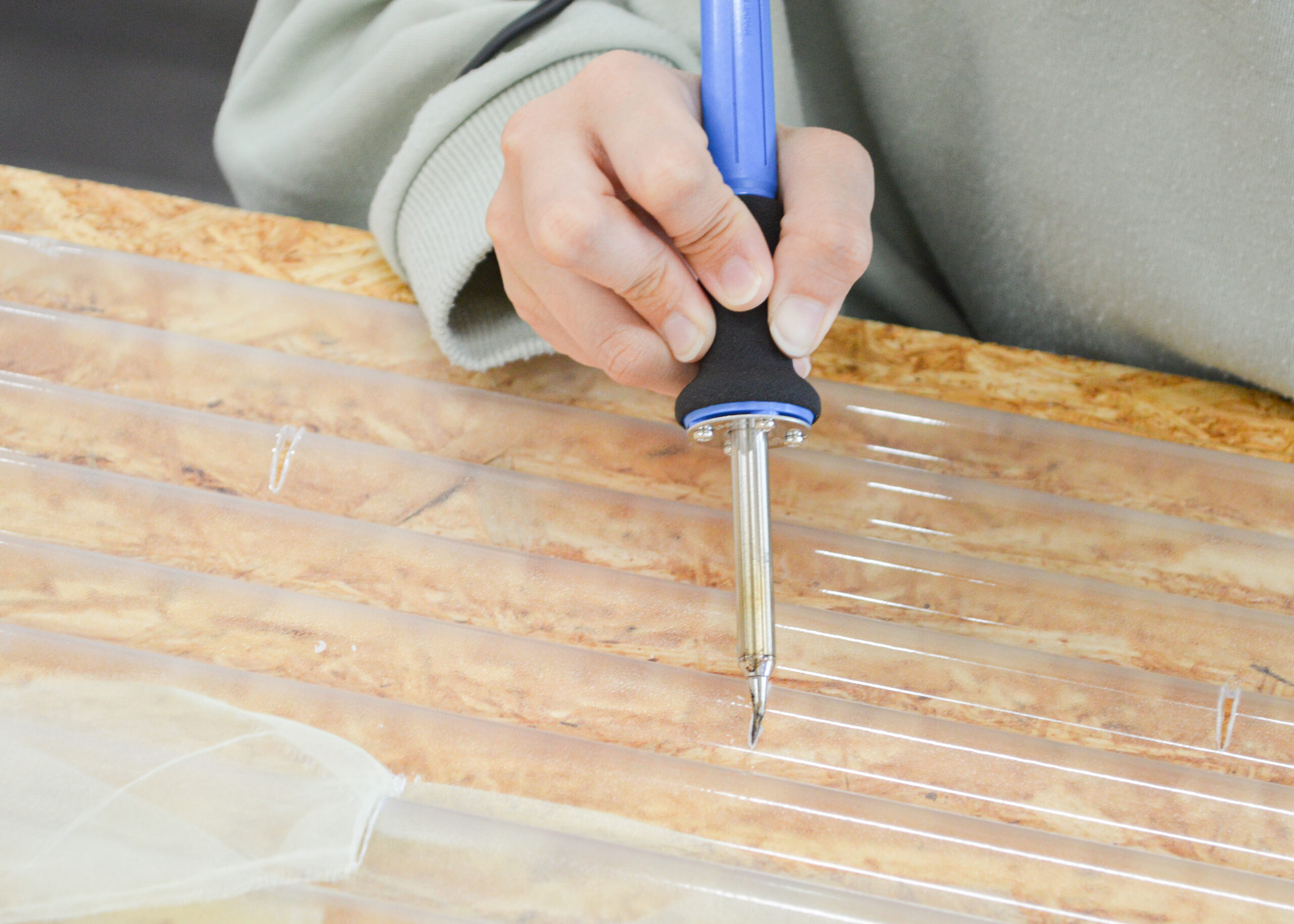 波板をヒートカッターでカット