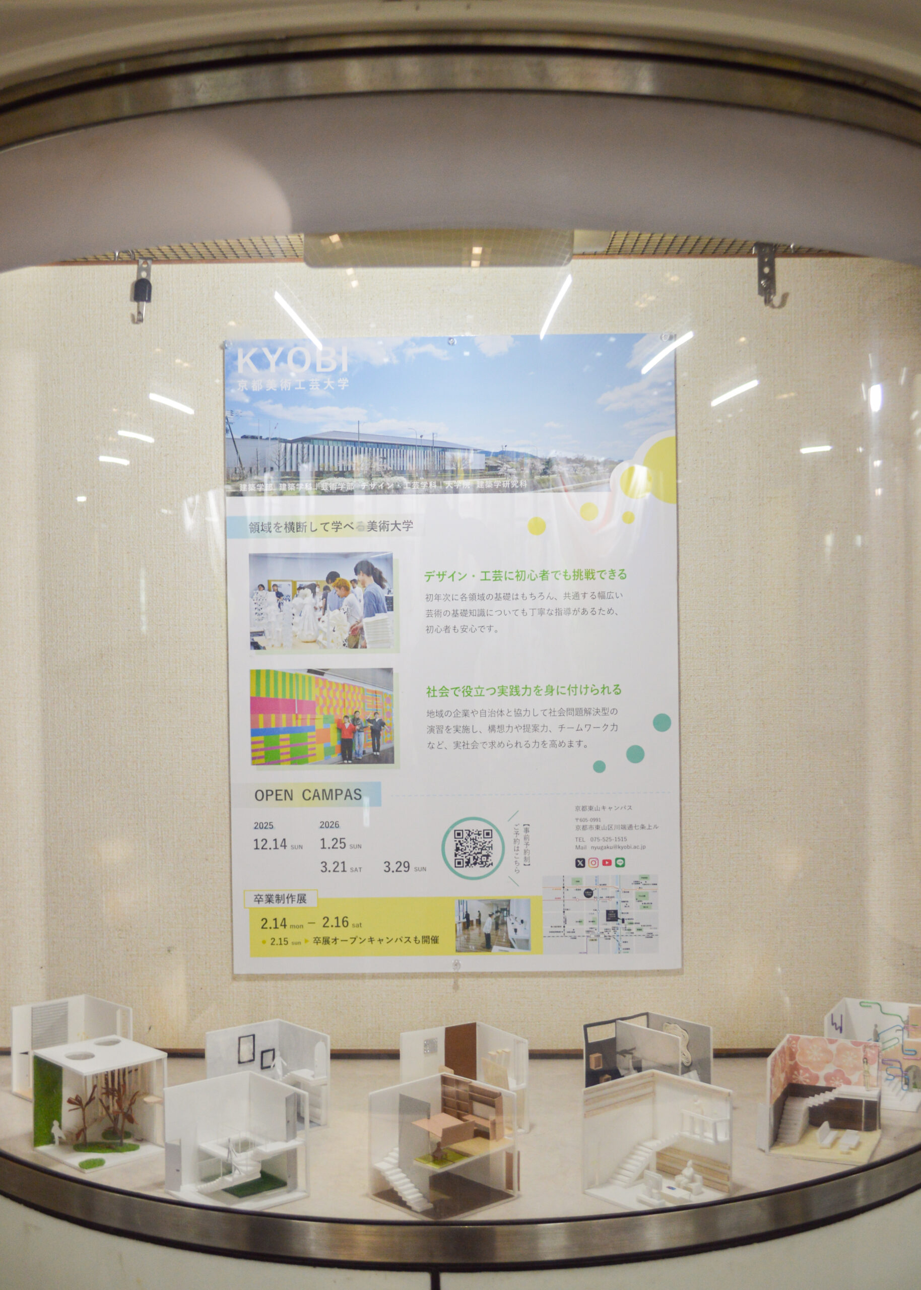 また、同プロジェクトのPRの一環として、烏丸御池駅にある御池ギャラリーでは、参加大学と協賛企業のPR展示も実施されています(2026年1月26日(月)まで)。