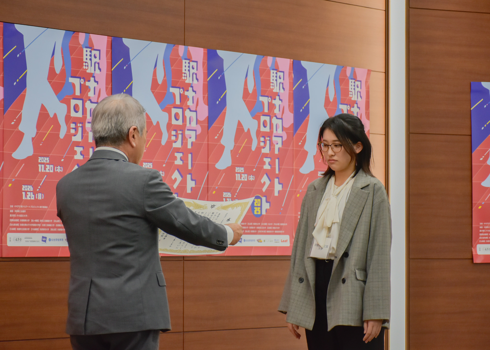 12月18日(木)、京都東山キャンパス KYOBIホールにおいて、「KYOTO駅ナカアートプロジェクト2025」(主催:KYOTO駅ナカアートプロジェクト実行委員会)のジョイントミーティングおよび感謝状贈呈式が行われました。