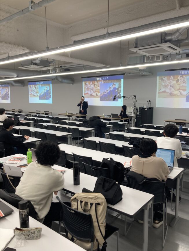 大阪府警本部・高度情報推進局の岡野明子局長が12月25日、教養科目「メディアリテラシー」のゲストスピーカーとして来学。特殊詐欺やサイバー攻撃の被害が深刻化する現状を説明し、学生に注意を呼びかけました。