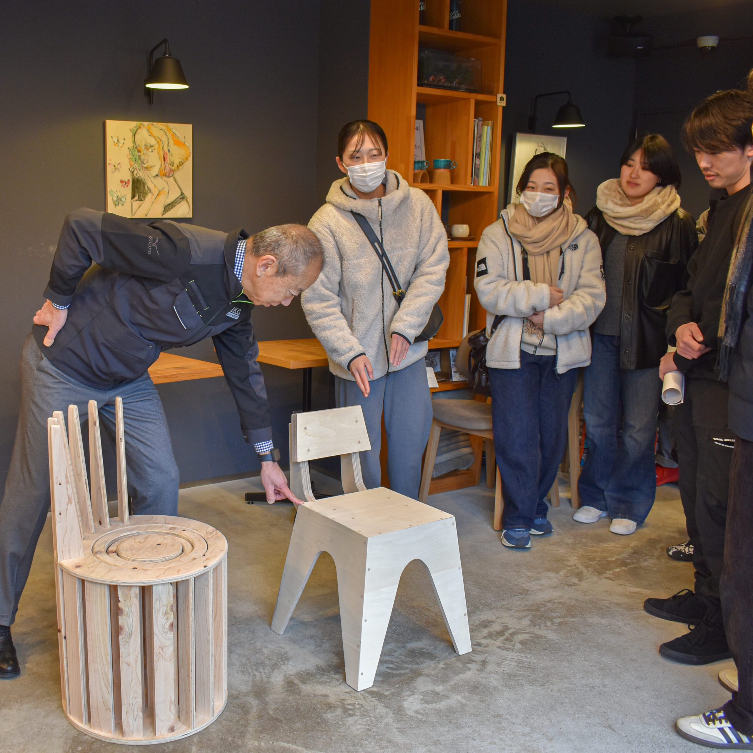 最後にmurmur coffee kyotoさんより、クオリティーが年々あがっていて今年はサイズ感もいい、また、椅子はコーヒーを味わう大切なファクターの一つ、これからも気持ちを込めて制作をしてくださいとエールをいただき、学生たちは大いにうなずいていました。