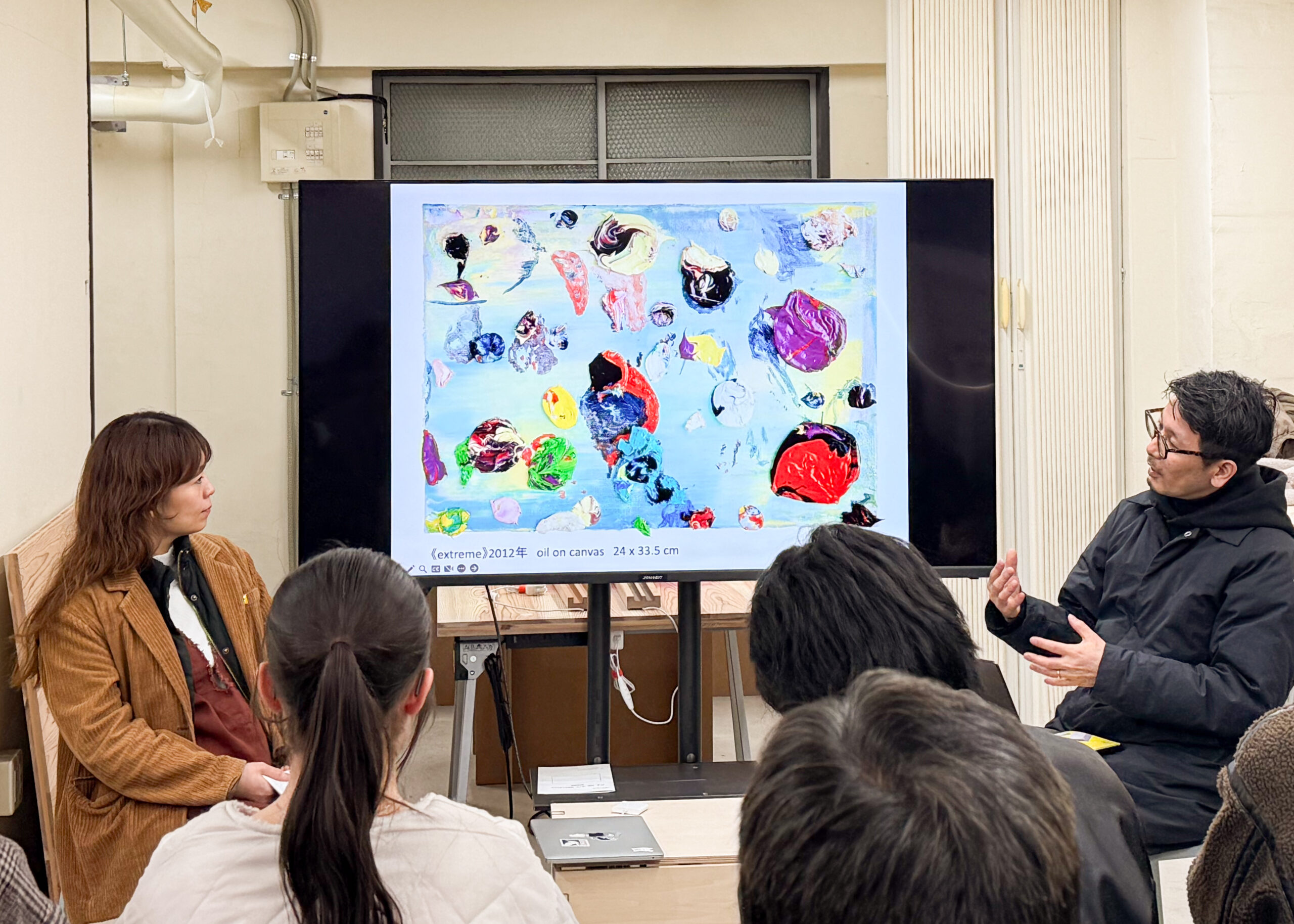 お二人とも堀川団地の1室をアトリエ兼住居として使用され、採光に恵まれた室内や地域の人々との密接な交流といった堀川団地ならではの環境の良さが制作活動に直結していた様子が窺われました。