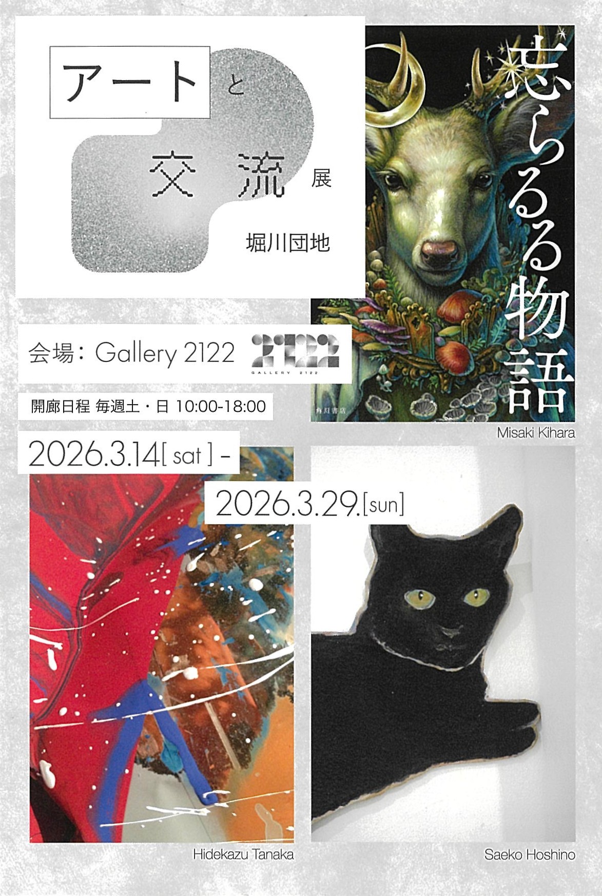 このトークイベント前日よりGallery2122(堀川出水団地 第2棟1階)では、田中先生と星野さん、そして現在堀川団地で活動されているイラストレーター・木原未沙紀さんという堀川団地の新旧の住人アーティストによる展覧会「アートと交流展」が開催されています。【2026年3月29日(日)まで】