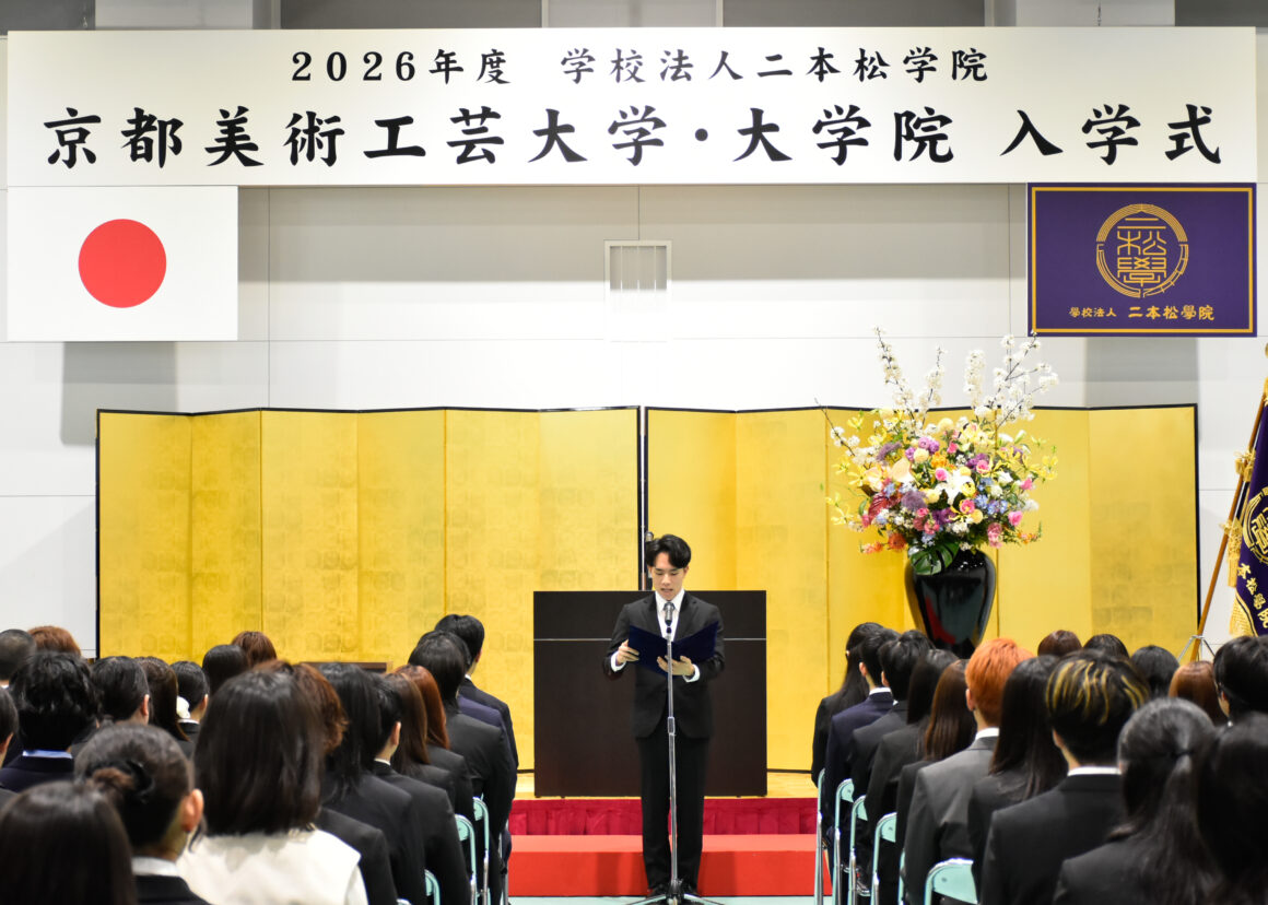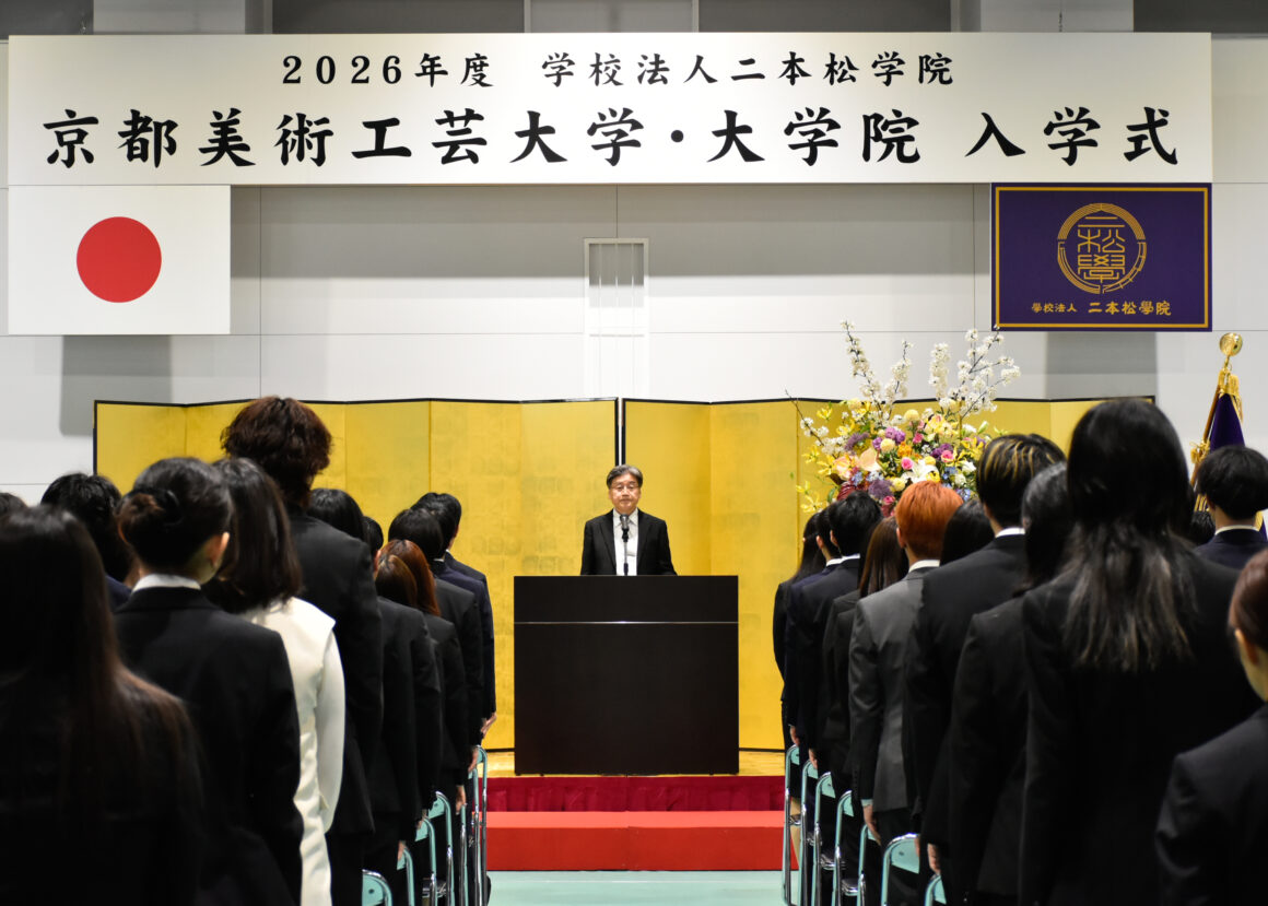 本日、京都東山キャンパスにて2026年度 京都美術工芸大学・大学院入学式を挙行し、学部生277名・学部編入生4名・大学院生12名の入学が竹脇学長より許可されました。